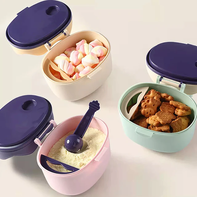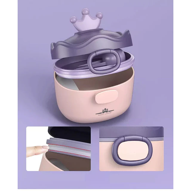 Contenedor hermético diseñado para almacenar y transportar leche de fórmula o snacks de forma segura. Incluye una cuchara dosificadora y un práctico borde nivelador para facilitar la preparación rápida del biberón en cualquier lugar.