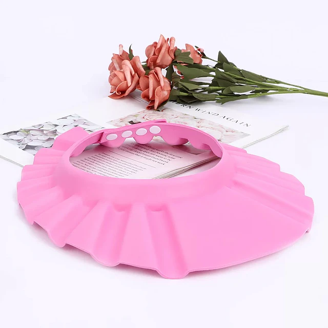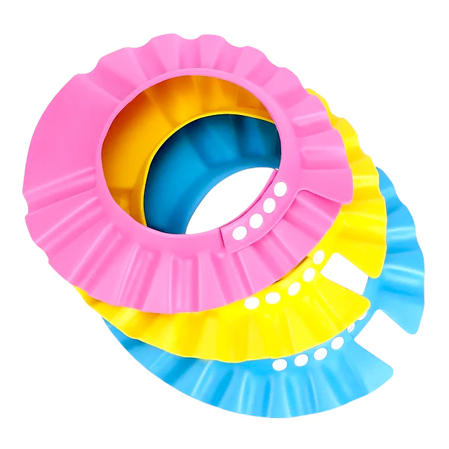 Práctico gorro protector que evita que el agua y el shampoo entren en los ojos y oídos del niño durante el baño. Su diseño ajustable con botones garantiza un sellado perfecto y cómodo en la cabeza.