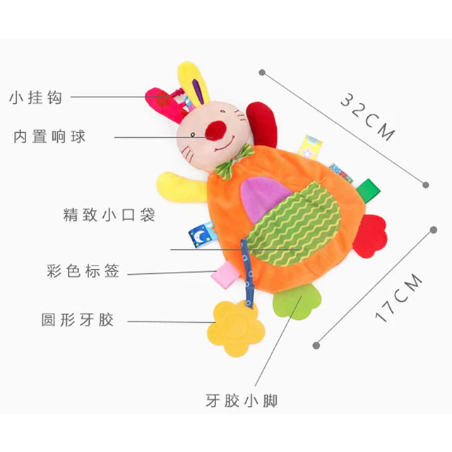El juguete perfecto para mantener a tu bebé entretenido y relajado. Este peluche colgante destaca por sus múltiples cintas de colores en los bordes, creadas especialmente para que los bebés practiquen el agarre de pinza y exploren texturas. ¡Súper suave y con gancho universal para el coche!