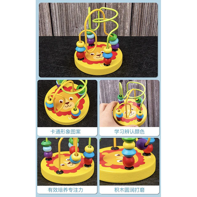 Material: Base y cuentas de madera natural; rieles de metal con recubrimiento seguro.