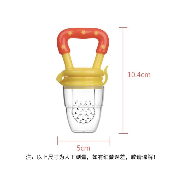 Práctico chupete alimentador diseñado para introducir alimentos sólidos de forma segura. Su tetina de silicona perforada previene el riesgo de asfixia, permitiendo que el bebé mastique frutas, verduras, lecbe extrayendo solo el jugo. Fácil de lavar y perfecto para llevar de paseo.